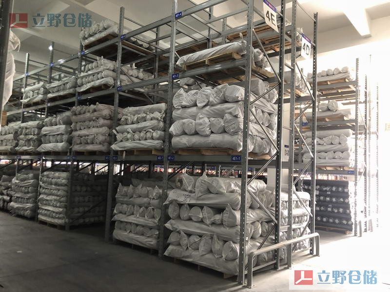 重型面料貨架采用的是橫梁式重型貨架結構,將面料置于托盤上或面料框內,然后用叉車將托盤(面料框)挑起,再放入貨架上的一種存取方式。根據承載量的不同,貨架上可配備井字跨梁等輔件產品,以達到安全高效的作用。
